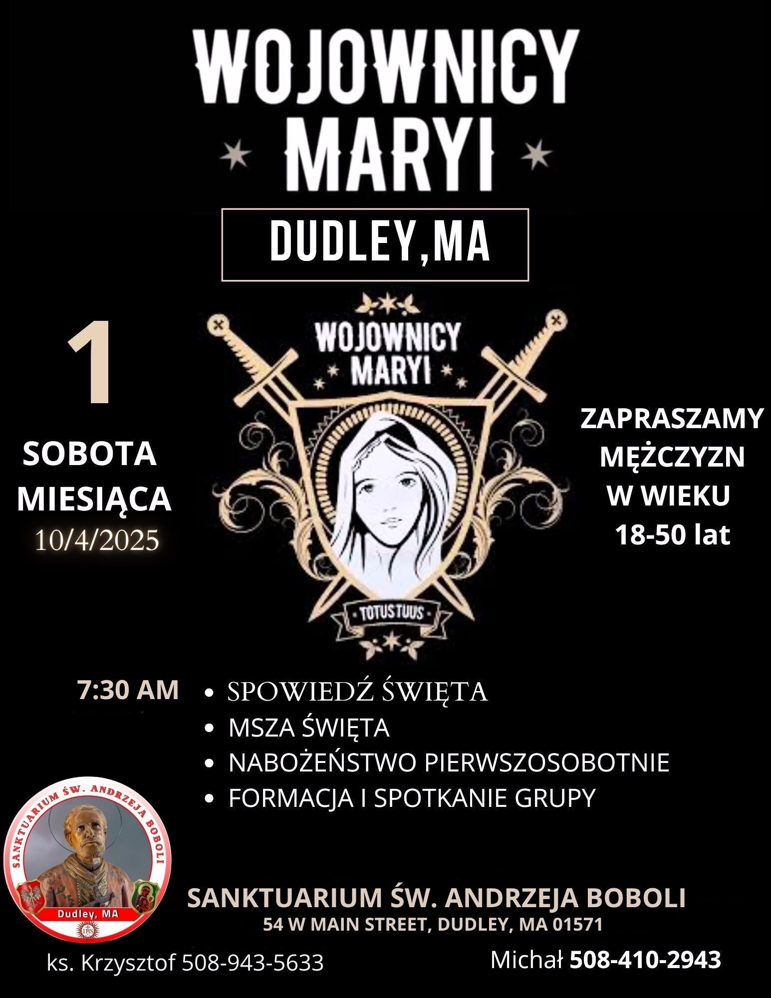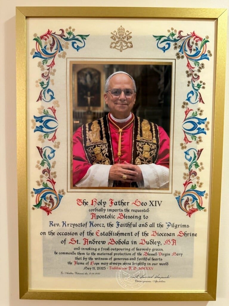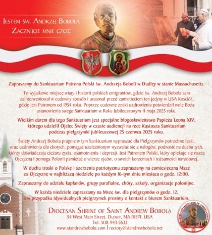 St. Andrew Bobola Parish, 54 West Main St., welcomes pilgrims to Sunday Masses with a blessing with the St. Andrews Bobola relic, 10:30 a.m. in English, followed by coffee shop and at noon in Polish. For information, call the rectory at 508-943-5633.